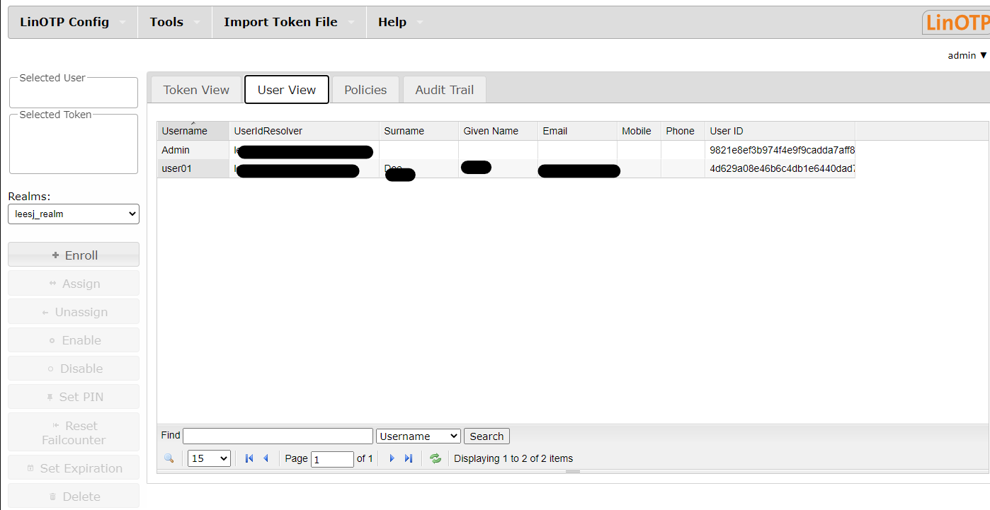 2 단계 : LinOTP 구성 및 Active Directory와 통합