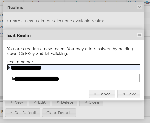- OK → New → 원하는 Realm name 입력 후 저장