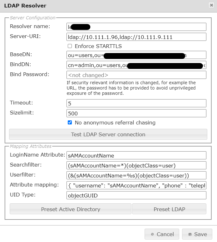 - BaseDN : AD정보 입력 (