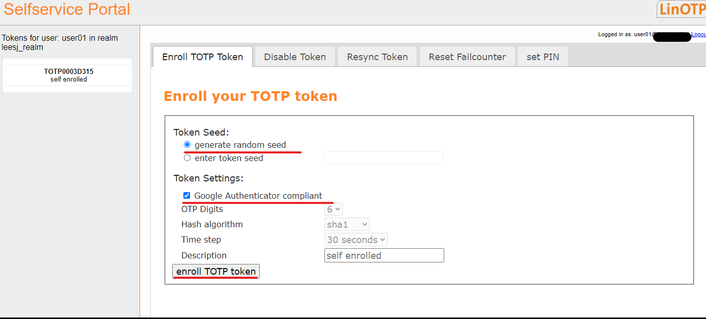 sudo htdigest /etc/linotp2/admins "LinOTP2 admin area" admin - 비밀번호를 설정 한 후 인스턴스를 재부팅